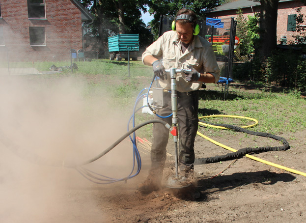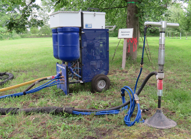 Wir sind in der Lage mit Bodensanierungsgeräten mittels einer Luftlanze das Erdreich schichtweise zu belüften und ggfls. auch anschließend festes oder flüssiges Material in den Boden hineinzuinjizieren. Mit diesem Belüftungsverfahren sind nachweislich gute Erfolge beim Erhalt von Bäumen erzielt worden, oft sogar ohne die zusätzliche Zufuhr von Nährstoffen oder anderen Bodenzuschlagsstoffen. Wenn die Wurzeln sich ausreichend mit Sauerstoff versorgen können, sind zusätzliche Dünger oftmals nicht mehr notwendig. Wenn man es schafft, die Baumaktivitäten anzukurbeln, dann „erhält der Baum sich selbst“.